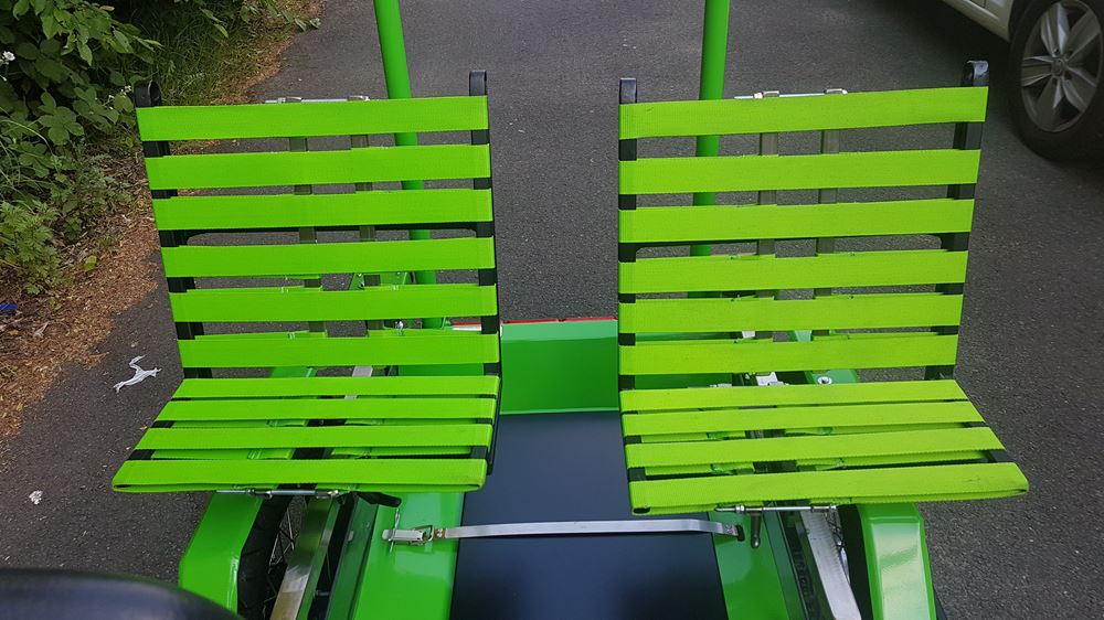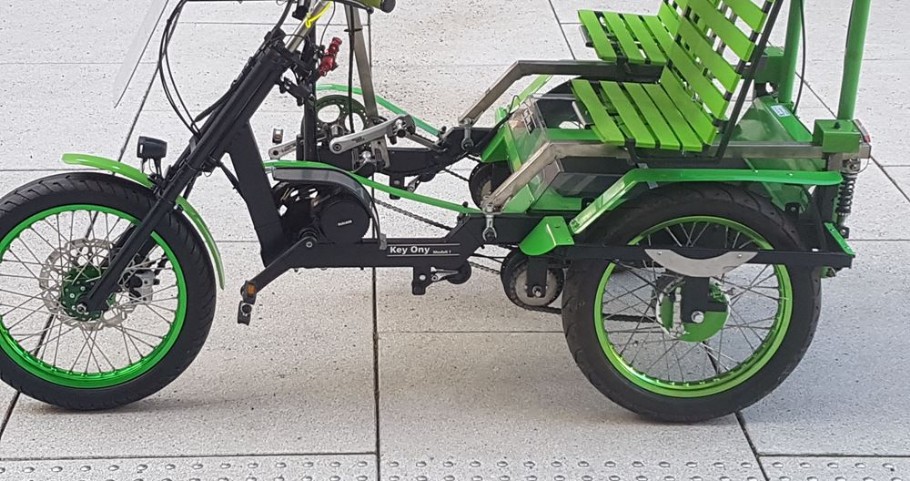 Stahlprofile verwendet und für die Herstellung keine Spezialmaschinen benötigt. Mit etwas mehr Aufwand können auch Aluprofile verwendet werden. Für den zwei farbigen Rahmen und Sitzgurte können alle R.A.L,Farben ausgewählt werden. Auch die Felgen,Naben und Speichen sind in vielen Farben erhältlich.Der KeyOny kann auch genutzt als Reha Rad ,Dreirad Therapie Tandem.